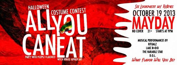 An all you can eat buffet of Fine Art and Costume design, where the Art on the walls could be purchased off the walls, and everyone was in contest for "Most Original" or "Best Costume" brag rights and prizes to launch People Flavored. In hand-made matching Christmas present costumes, one pristine and from "Treat" to "Trick" and the other slap-dashed with re-used wrapping paper and duct tape from "Trick" to "Treat," lookpastit with RAeyes won "Most Original."
